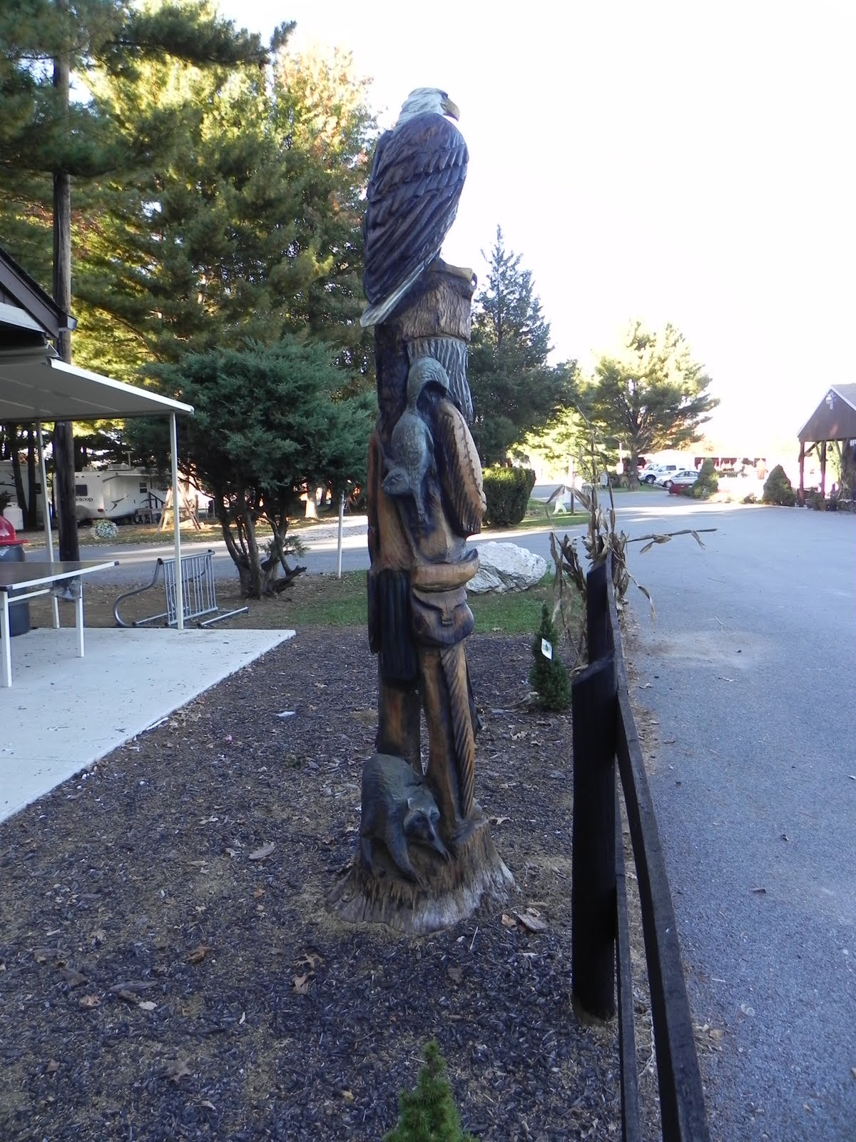 This lovely park was in a grove of deciduous trees—not a pine to be seen! But it was a nice park. The heavily treed site was not conducive to satellite TV but we did have internet access. One of the staff had a very nicely decked out golf cart as his work vehicle.